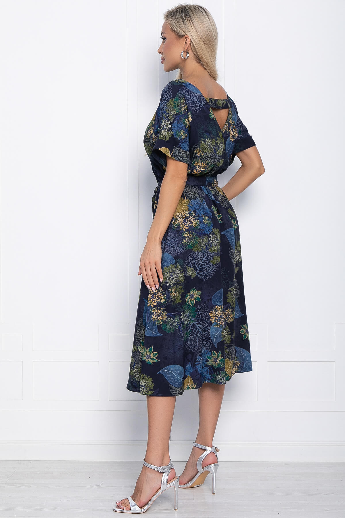 Элегантное, женственное платье с цветным рисунком, талия на резинке, с поясом в комплекте, сзади V - образный вырез с планкой.