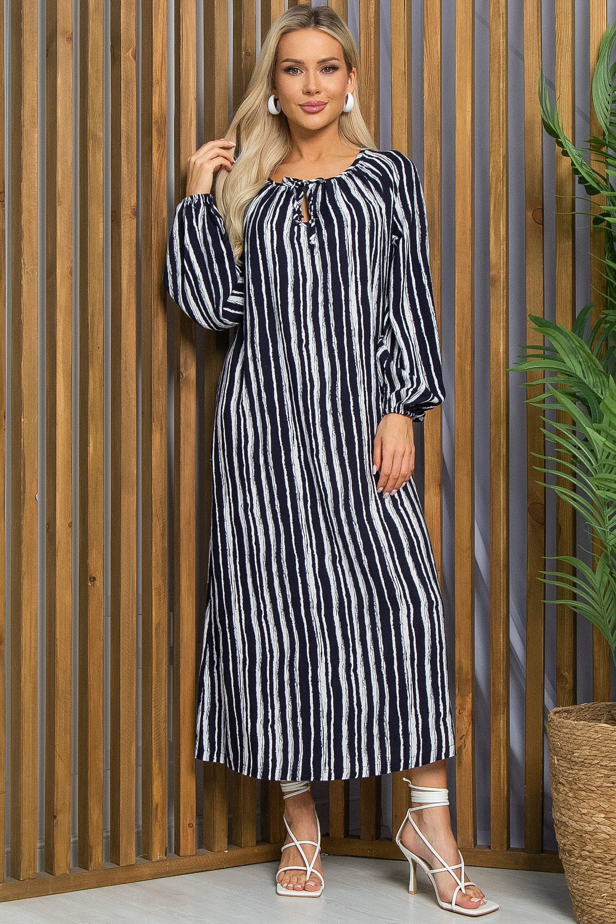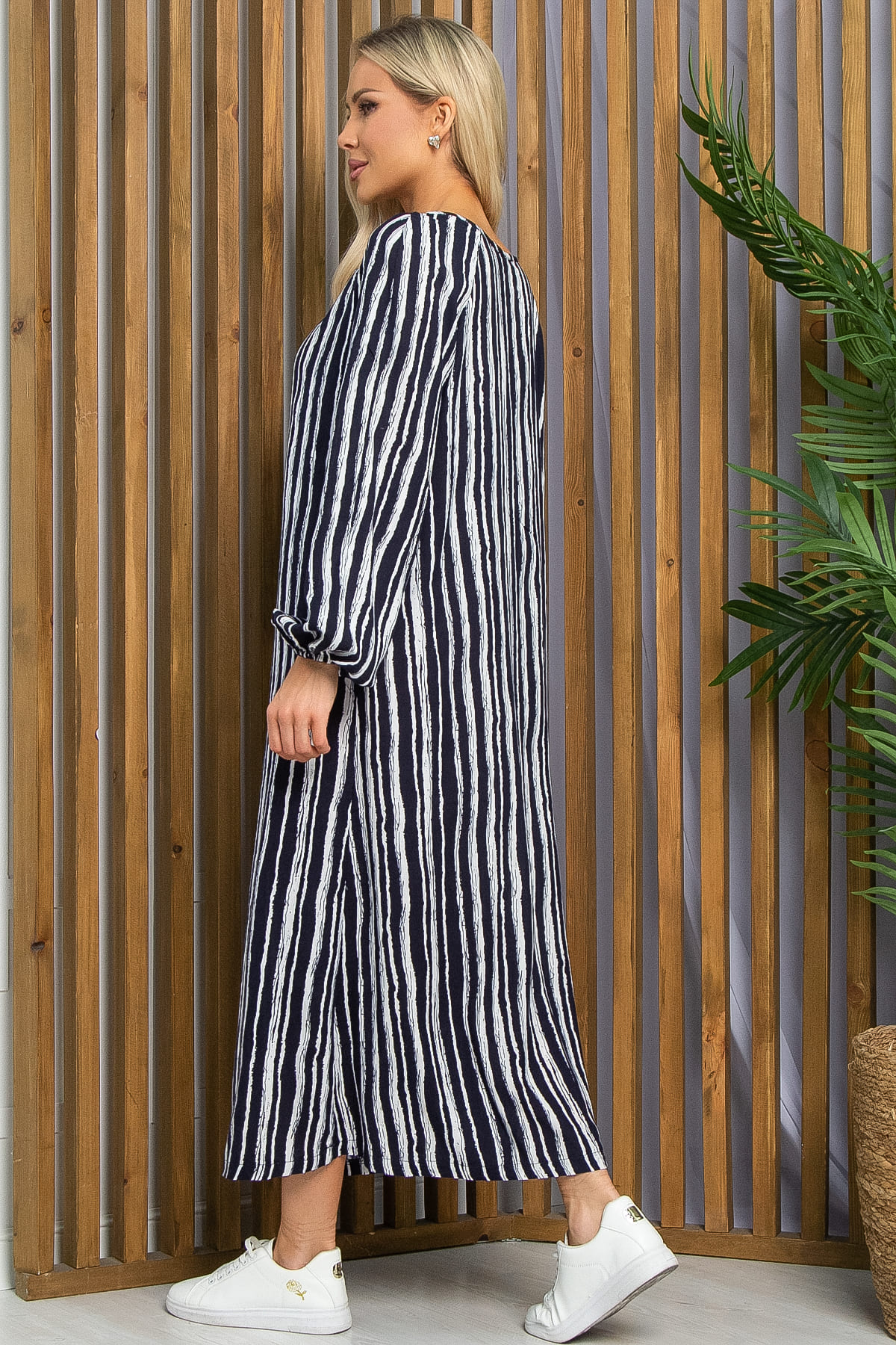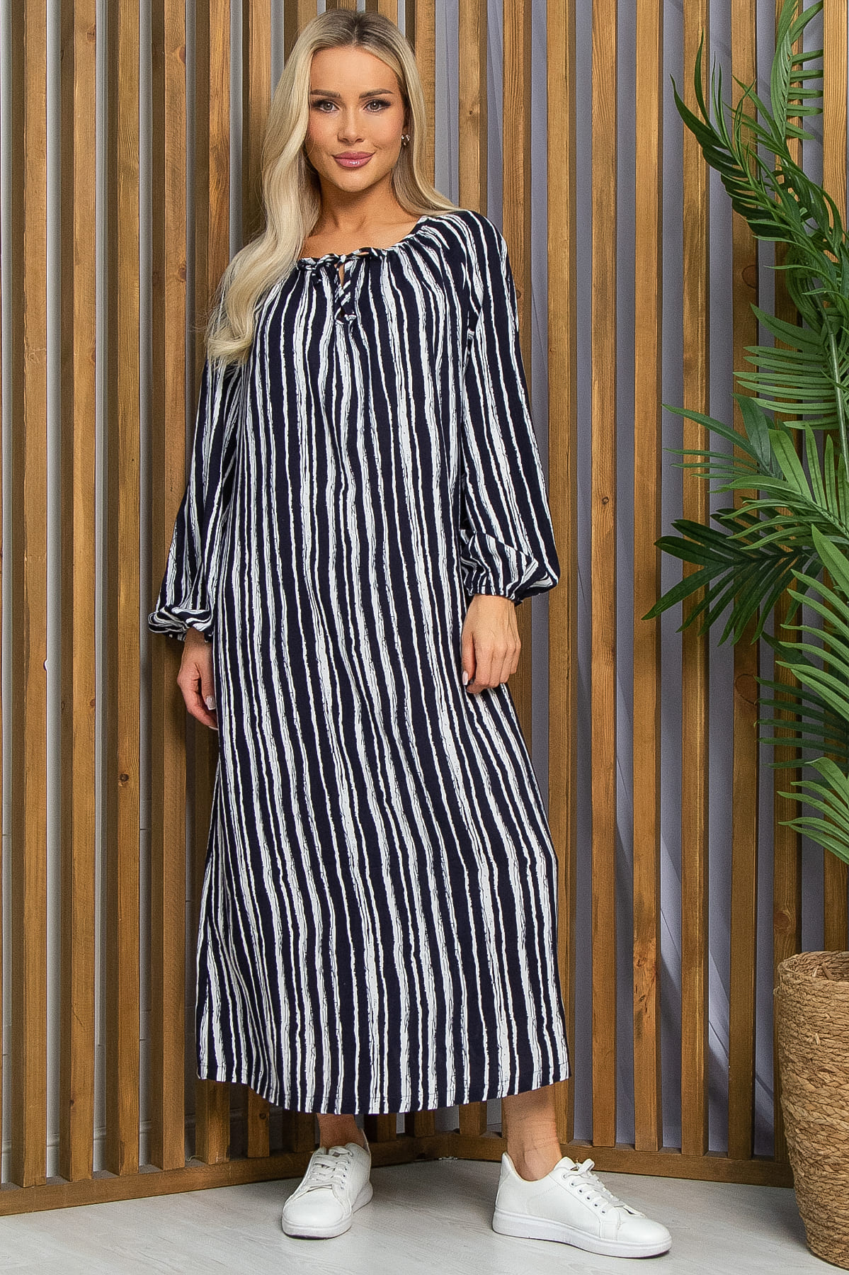 Это прекрасное платье поможет вам выглядеть стильно и элегантно в любой ситуации. Изготовленное из натурального и дышащего материала, этот женский повседневный наряд идеально подходит для лета. Легкое платье в стиле «бохо» с длинными рукавами на резинке. Свободный крой платья больших размеров обеспечивает комфорт и свободу движений. Благодаря своему универсальному дизайну, платье подходит как для повседневного ношения, так и для особых случаев, включая вечерние мероприятия и торжества.