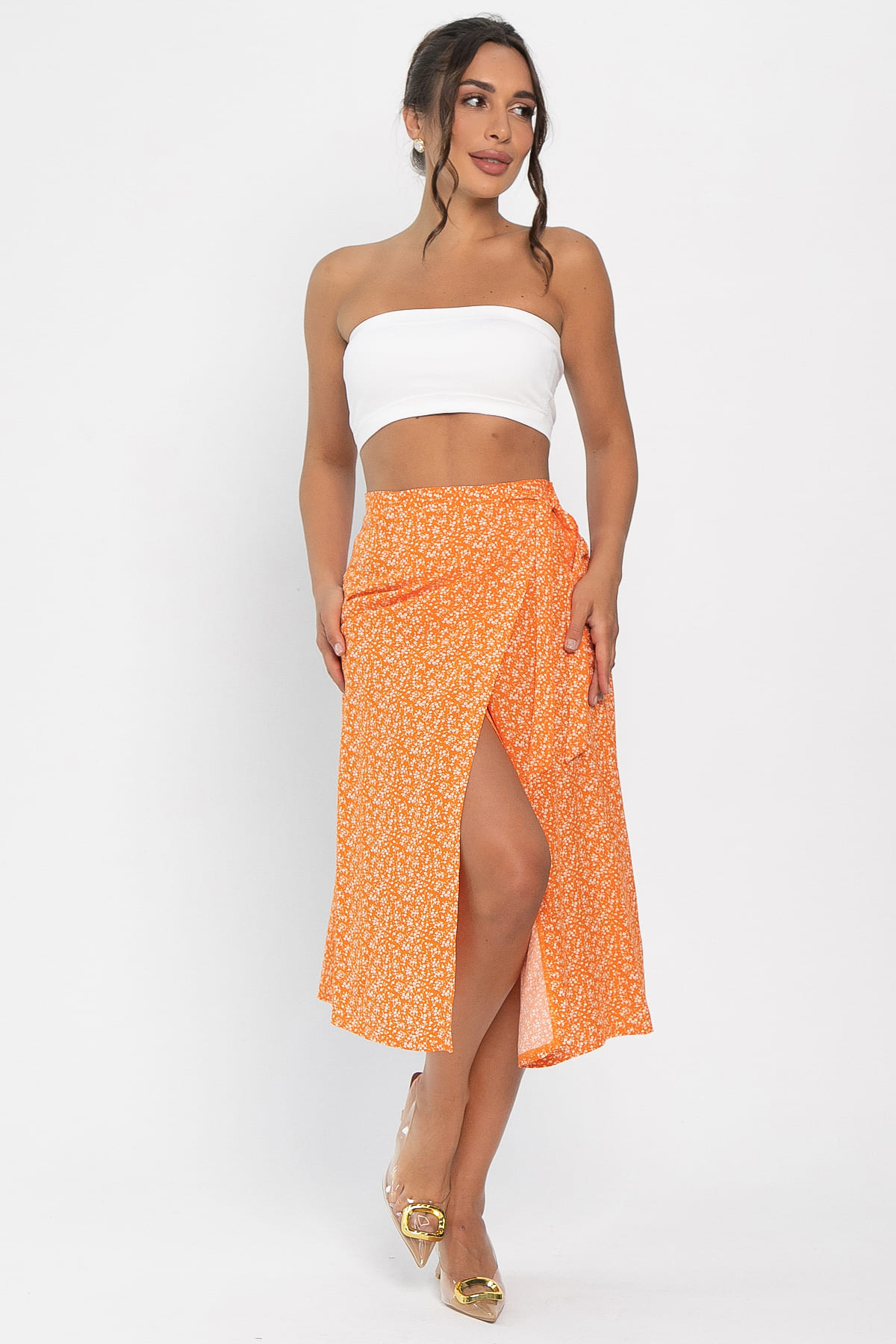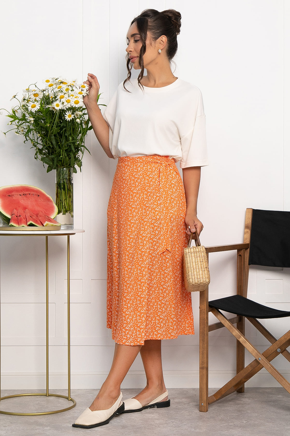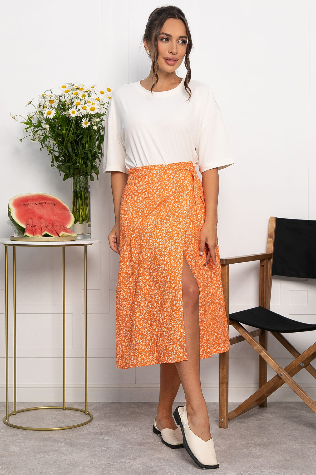 Юбка на запах в длине миди подчёркивает талию и красиво струится при движении. Внутреннее полотно аккуратно фиксируется пуговицей, внешнее — завязывается элегантным узлом на поясе. Простая, но выразительная юбка идеально подойдет для повседневных и романтичных образов, делая любой образ особенным!