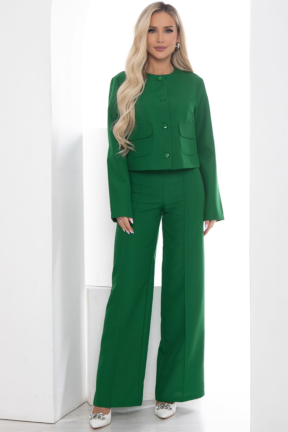 Укороченный жакет полуприлегающего силуэта, длинный втачной рукав, накладные карманы с клапанами, круглый вырез горловины, центральная застежка на петли/ пуговицы. Без подкладки.